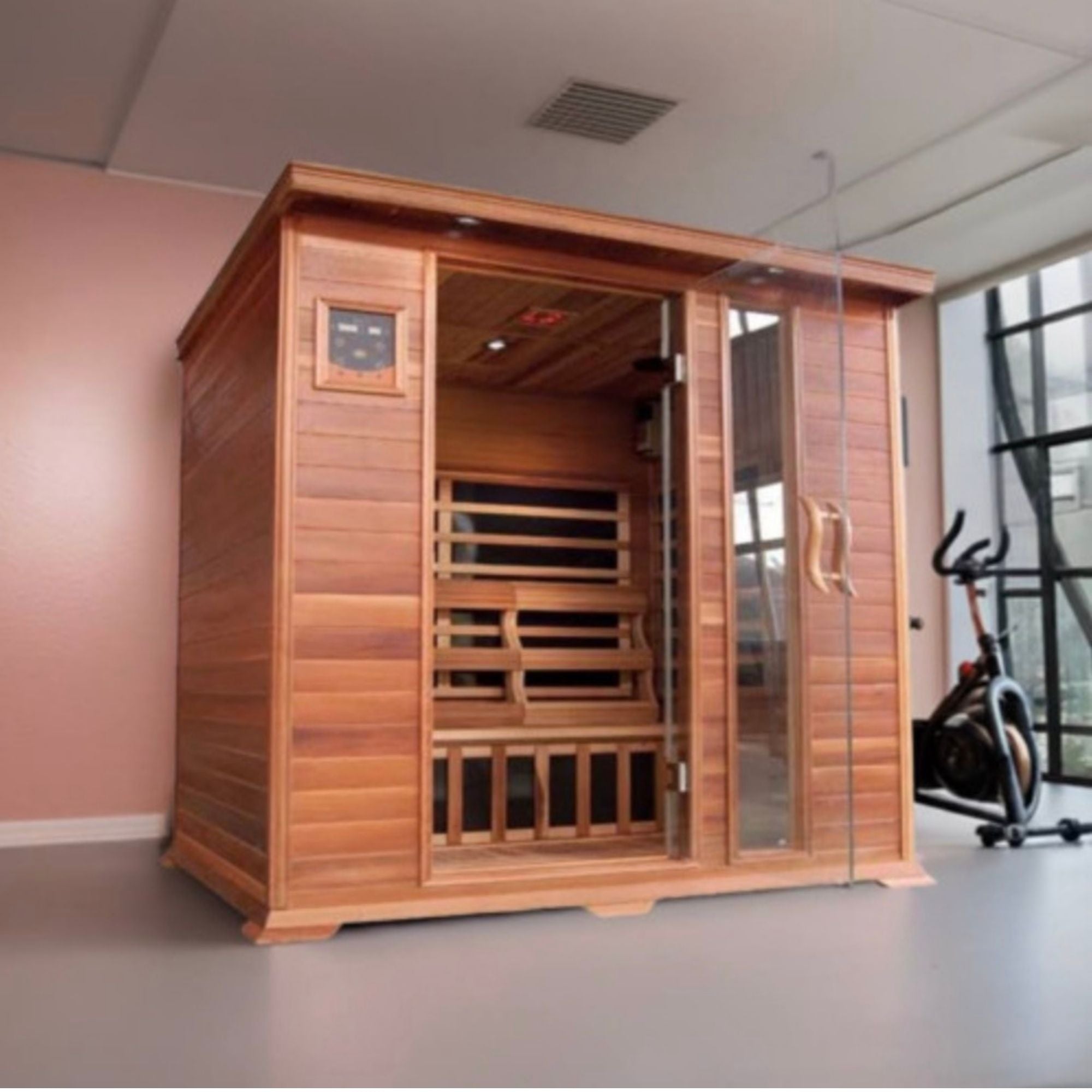 Crafted to accommodate up to three people, our 3-person saunas provide ample room for you to stretch out and experience the therapeutic heat. Made from high-quality wood, these saunas not only deliver health benefits like detoxification and improved blood flow but also create a luxurious, spa-like atmosphere right in your home.